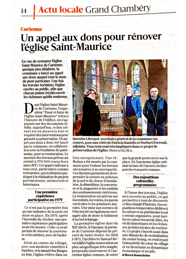 Enfin, vous trouverez ci-dessous l’article du Dauphiné Libéré consacré à l’église de Curienne.